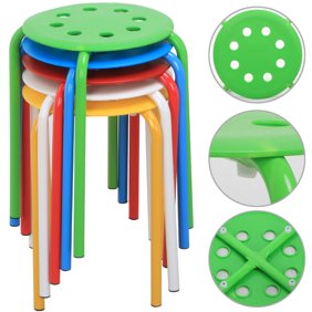 Set Of 4 18 Stacking Stool Round Dining Chair Backless Wood Home